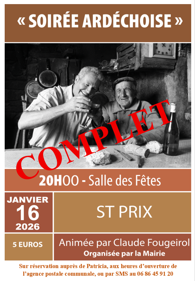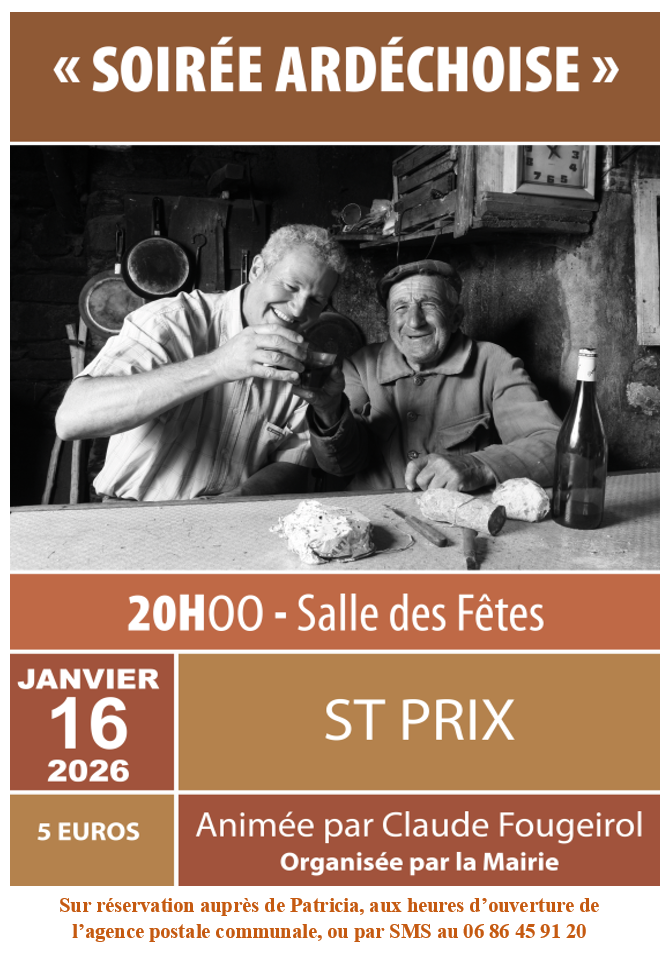 Si vous possédez des clichés d’époque et souhaitez les voir publiés sur notre page, n’hésitez pas à nous les envoyer à : mairie@saint-prix-ardeche.fr